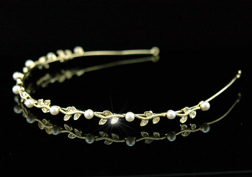 Acasa » Coronite mireasa » A1214 Diadema aurie cu perle